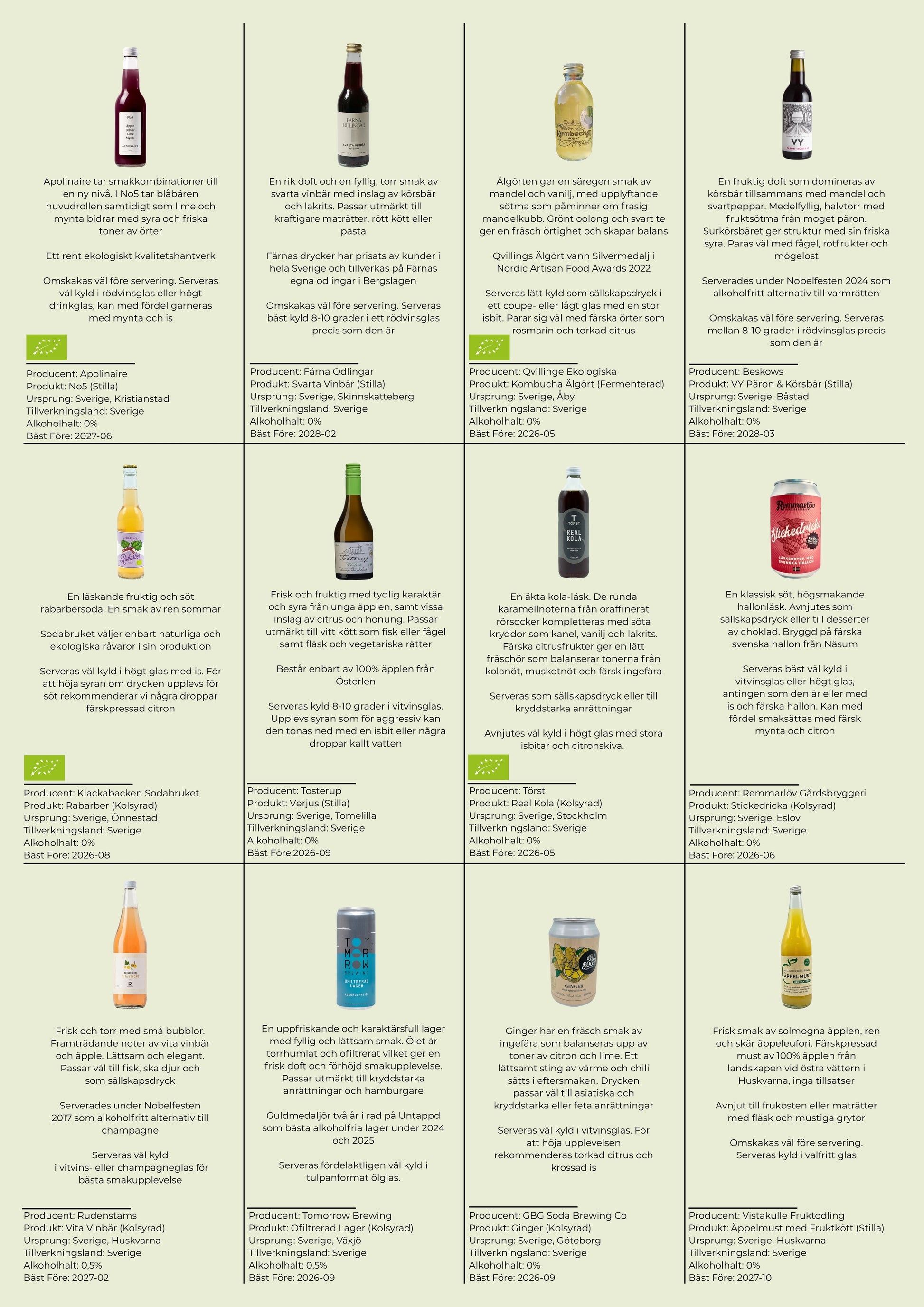 Alkofritts blandlåda med 12 hantverkstillverkade drycker från 12 svenska producenter